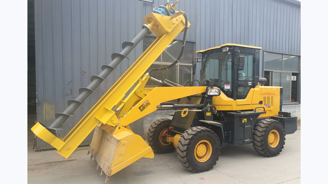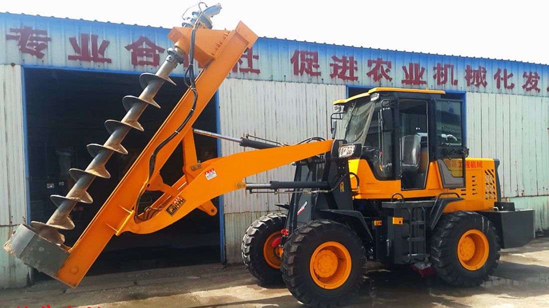 电线杆打孔机 电线杆钻孔机 铲车打桩机装载机改装打桩机 铲车打桩机铲运机改装打孔机是电线杆钻孔专用设备,采用30铲车,490发动机,动力头功率在20kw以上,配合专用合金螺旋钻杆,特别适用于电线杆立杆钻孔,小型农用地基钻孔工程等,钻孔孔径可根据每个客户要求定做,满足不同的工程要求,欢迎新老客户参观选购。